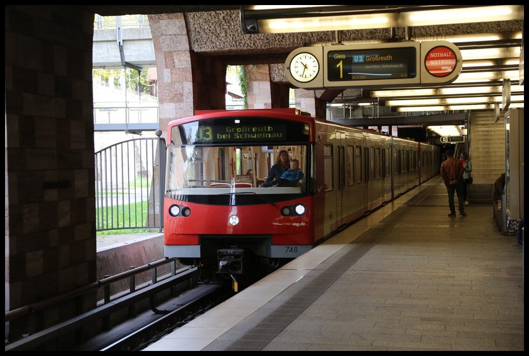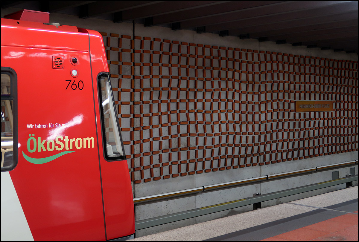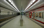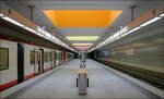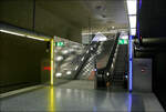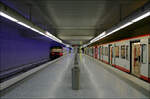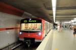 DT2-Doppeltraktion geführt vom Wagen 550 am 03.08.2011 beim Verlassen des U-Bahnhofs Messe.