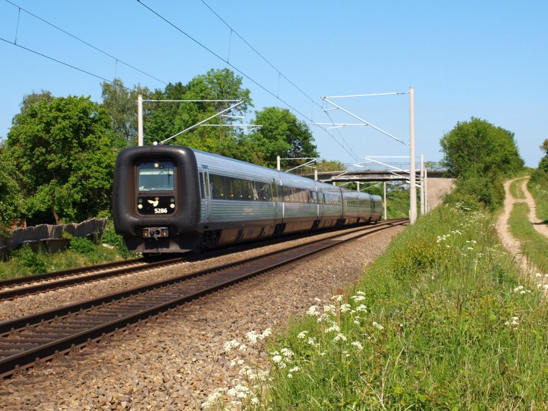 DSB IC 3 5286 + 5076 durchfahren am 25.05.09 Altenfelde als EC 36 Kopenhagen - Hamburg Hbf. In wenigen Minuten wird Reinfeld (Holst.) passiert.