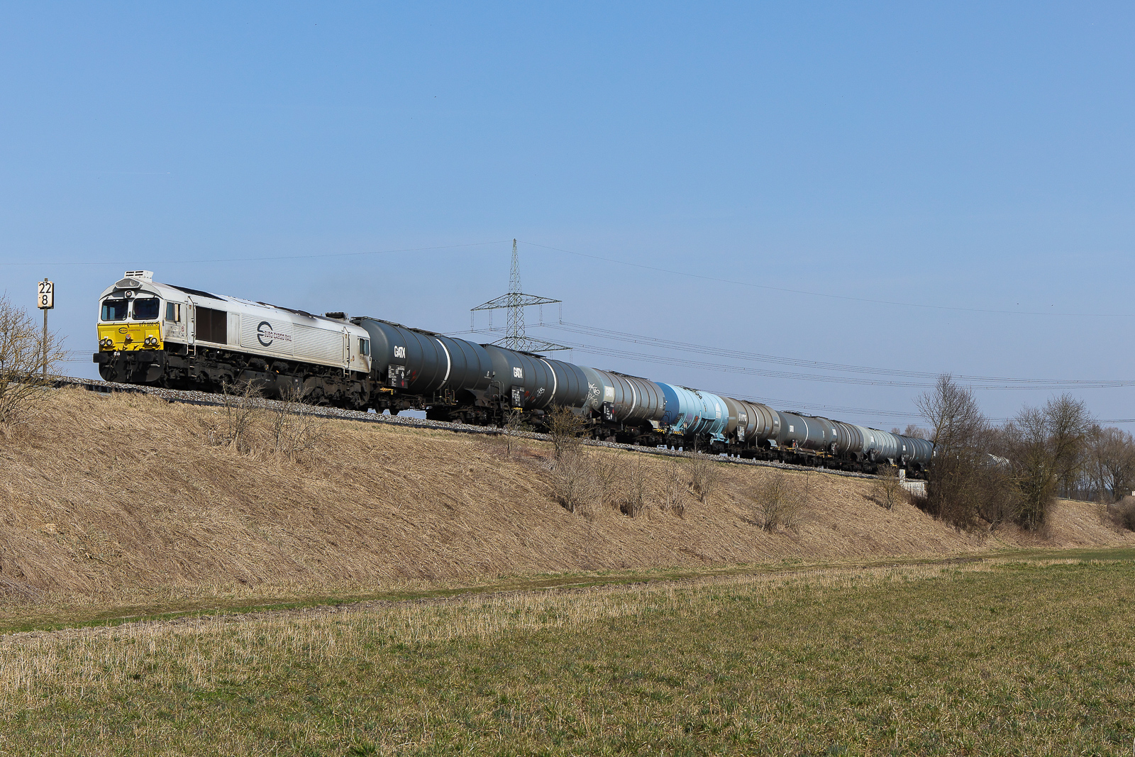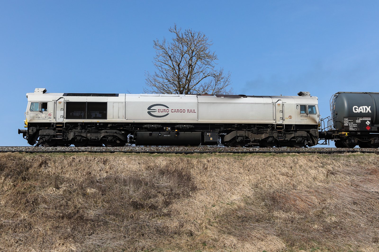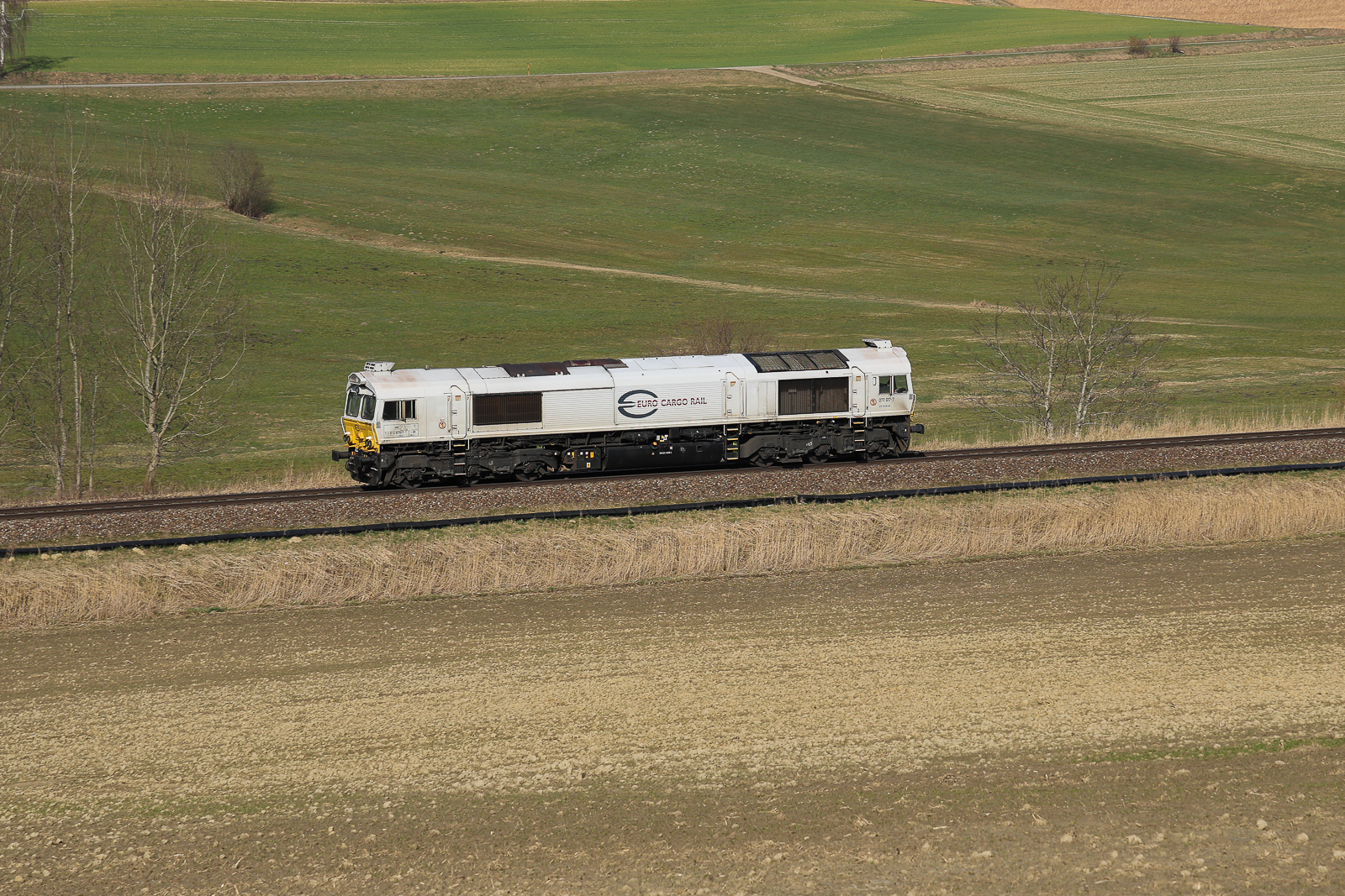 DB Cargo 077 017 alleine wieder auf dem Heimweg bei Thann-Matzbach am 10.3.2026 in Richtung Mühldorf.