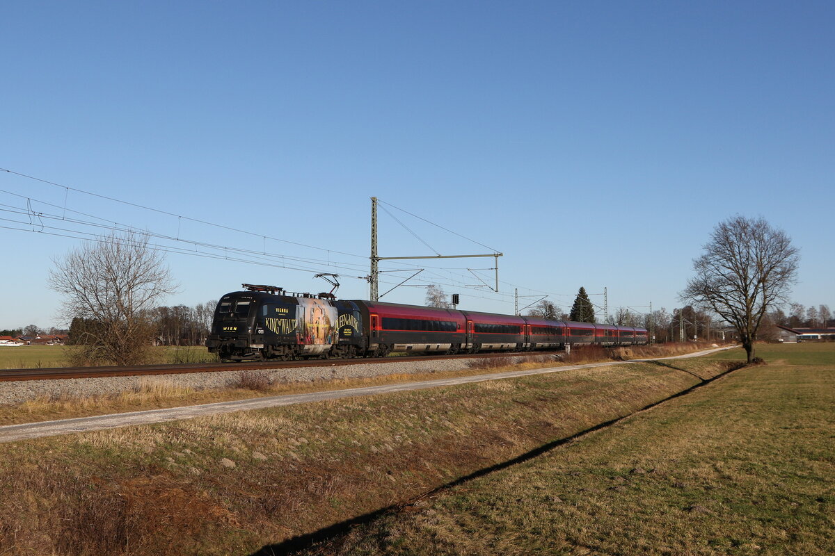 1116 195 "Nightjet" war mit einem "EC" am 9. Juli 2024 bei Axdorf auf dem Weg nach München.