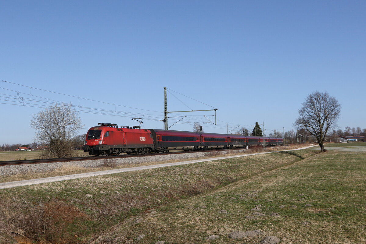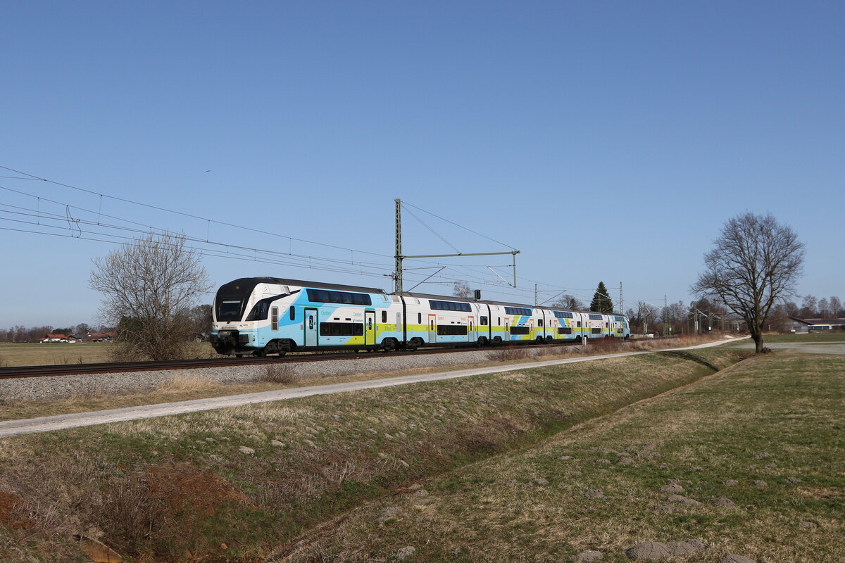 412 215 war als "ICE 118" am 4. März 2026 bei Übersee am Chiemsee auf dem Weg nach Münster.