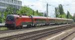 RJ 69 (München Hbf-Wien Westbahnhof) mit Schublok 1116 214-6 bei Vogl 28.5.13