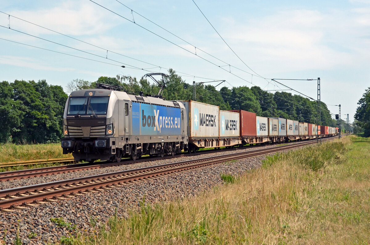 boxXpress.de GmbH, Hamburg [D] mit der MRCE Vectron "X4 E - 612" [NVR-Nummer: 91 80 6193 612-9 D-DISPO] und Containerzug am 08.07.22 Vorbeifahrt Bahnhof Dedensen Gümmer.