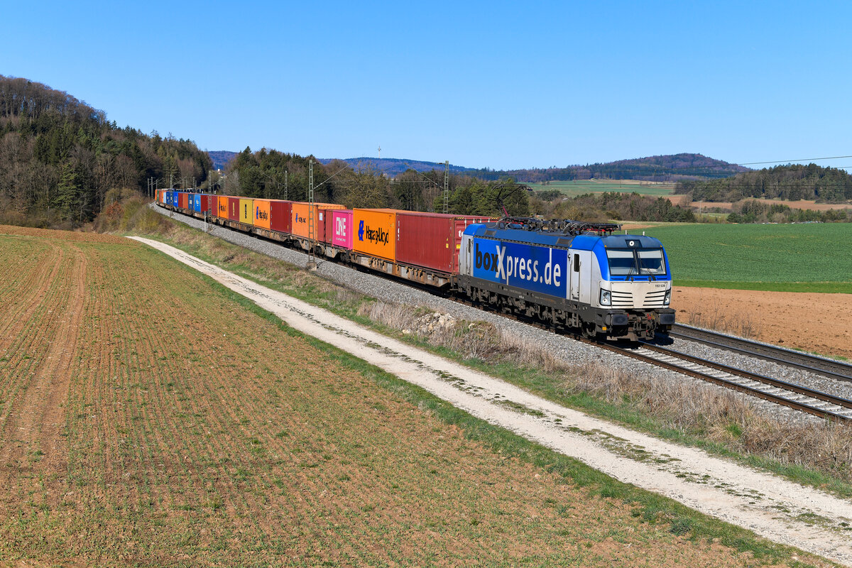 193 854 MRCE/Boxxpress mit einem Containerzug bei Postbauer-Heng Richtung Nürnberg, 01.12.2020