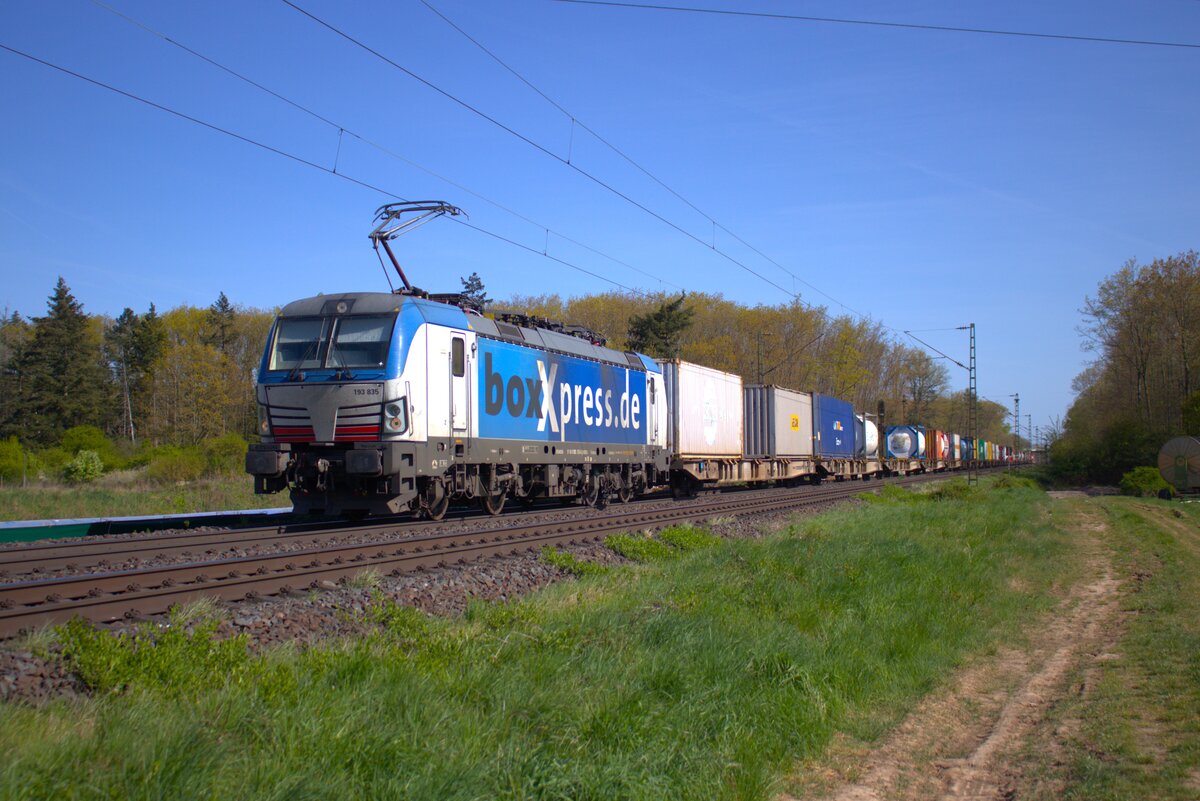Eiskalt war es an diesem Tag in den schattigen Bereichen - 193 883 Boxxpress mit einem Containerzug bei Dollnstein Richtung Treuchtlingen, 23.11.2021