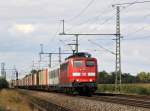 Akiem 186 266, vermietet an CTL Logistics, mit Containerzug in Richtung Bremen (bei Diepholz, 01.04.19).