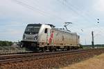 186 275-4 fährt über die Gütergleise durch oelde in Richtung Bielefeld. Links sieht man den Notbahnsteig Gleis 1.