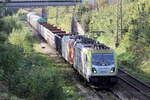 Mit dem hellen Grün passt 193 785-3 von Captrain perfekt zum Frühling. Die Lok ist mit ihrem Containerzug am 04.04.2023 auf der KBS 310 in Richtung Magdeburg unterwegs. Im Hintergrund ist die knapp 500 Meter lange Brücke der A14 über das Tal der Schrote zusehen.