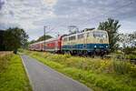 110 278 der Centralbahn unterwegs mit einem langen Sonderzug aus Hamburg nach Düsseldorf bzw Köln am Rosenmontag 2026. Gemächlich rollte der Zug am 16.2.2026 über die verschneite Rollbahn bei Sythen