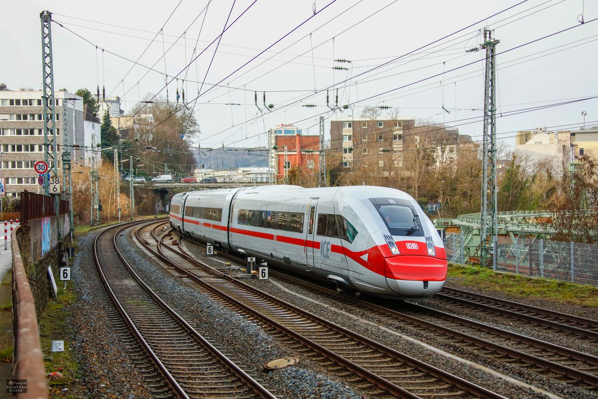 ICE4 DB 412 213 mit "Mundschutz" als ICE557 nach Berlin, in Wuppertal, am 20.12.2020.