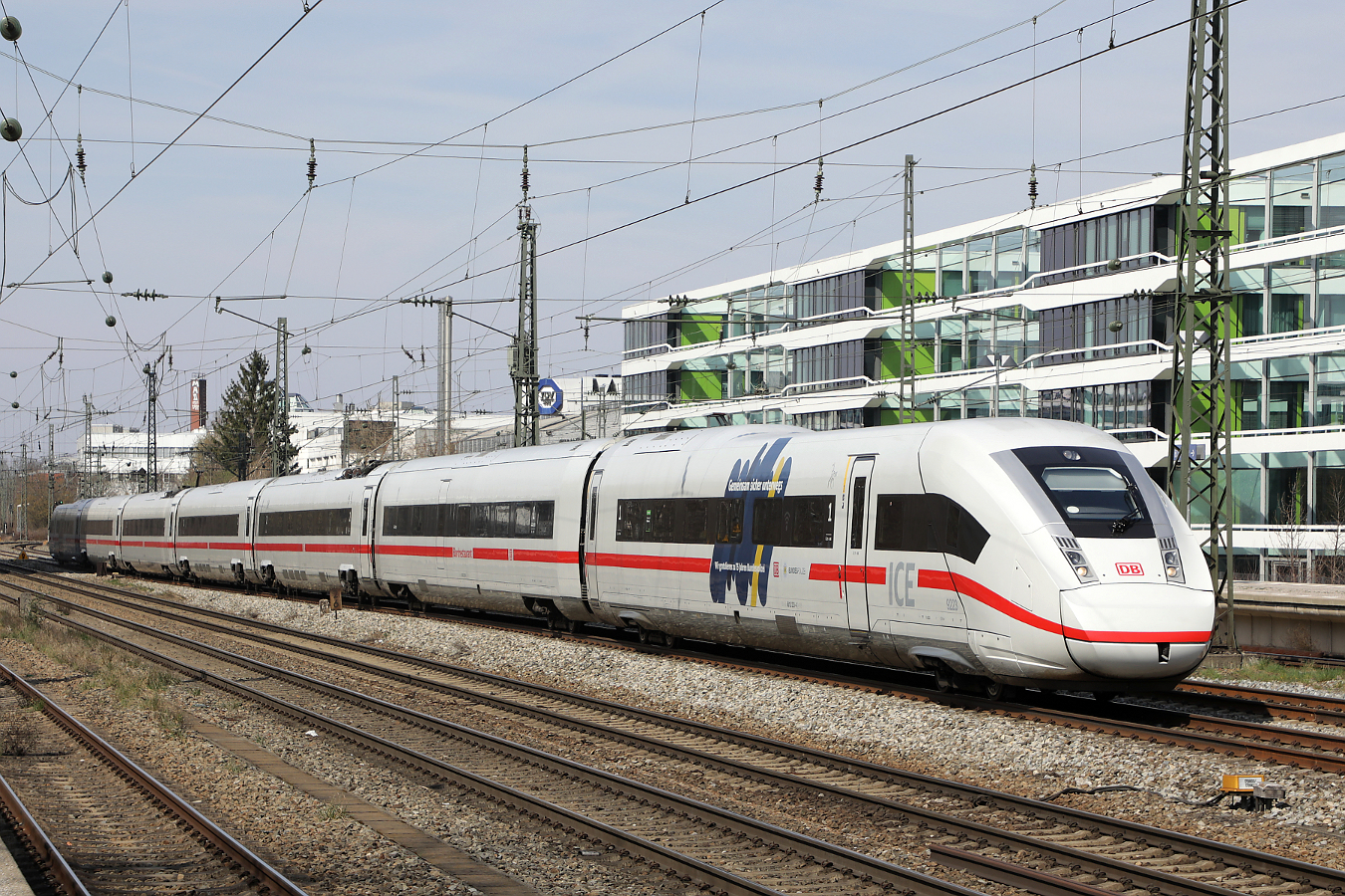 weißer Zug im Schnee: 4110 110-2 als IC 2271(Warnemünde-Dresden)kurz vor der Ausfahrt in Warnemünde.12.02.2021