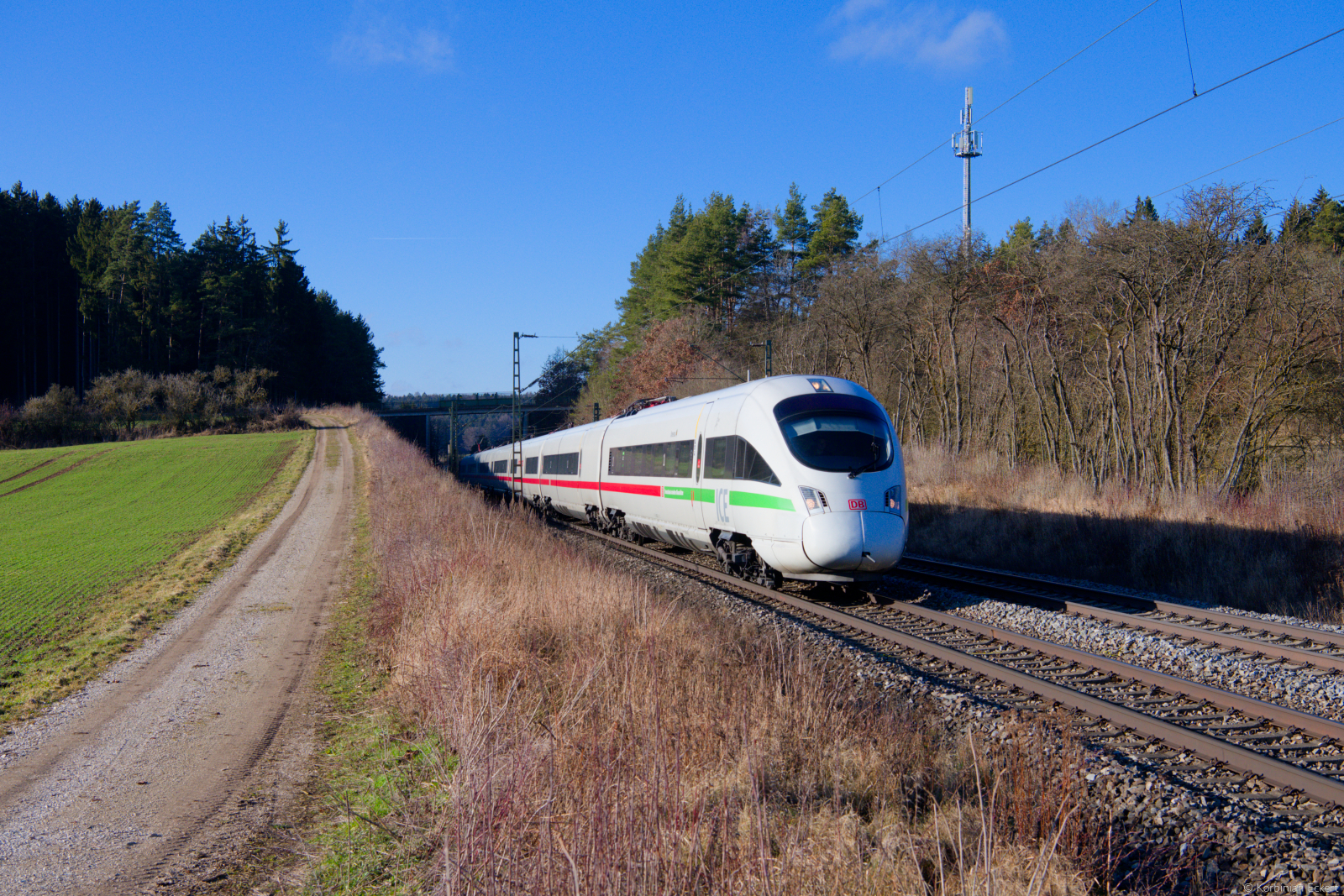 411 082 DB Fernverkehr als ICE 93 (Hamburg-Altona - Wien Hbf) bei Parsberg, 14.01.2022
