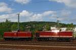 212 063-2 und 212 370-1 (EfW) mit einem Schotterzug in Hamm, 26.