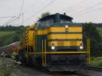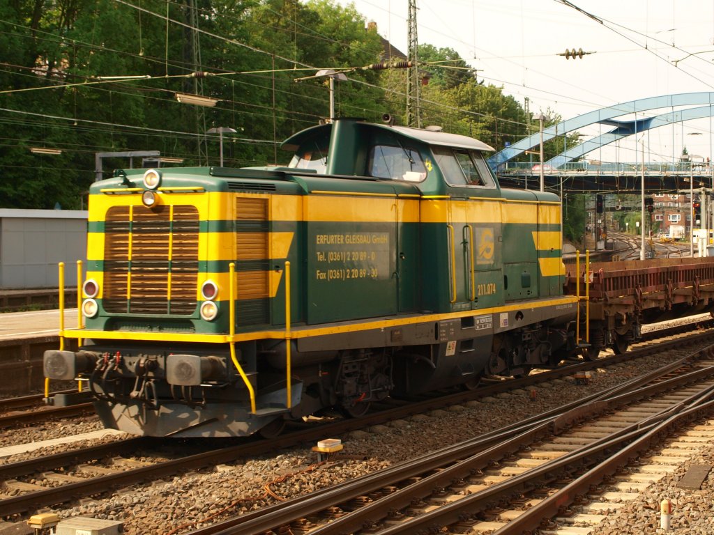211 074 von der Erfurter Gleisbau Gmbh mit Bauwagen bei der Fahrt durch den Aachener Hbf am 12.07.2010