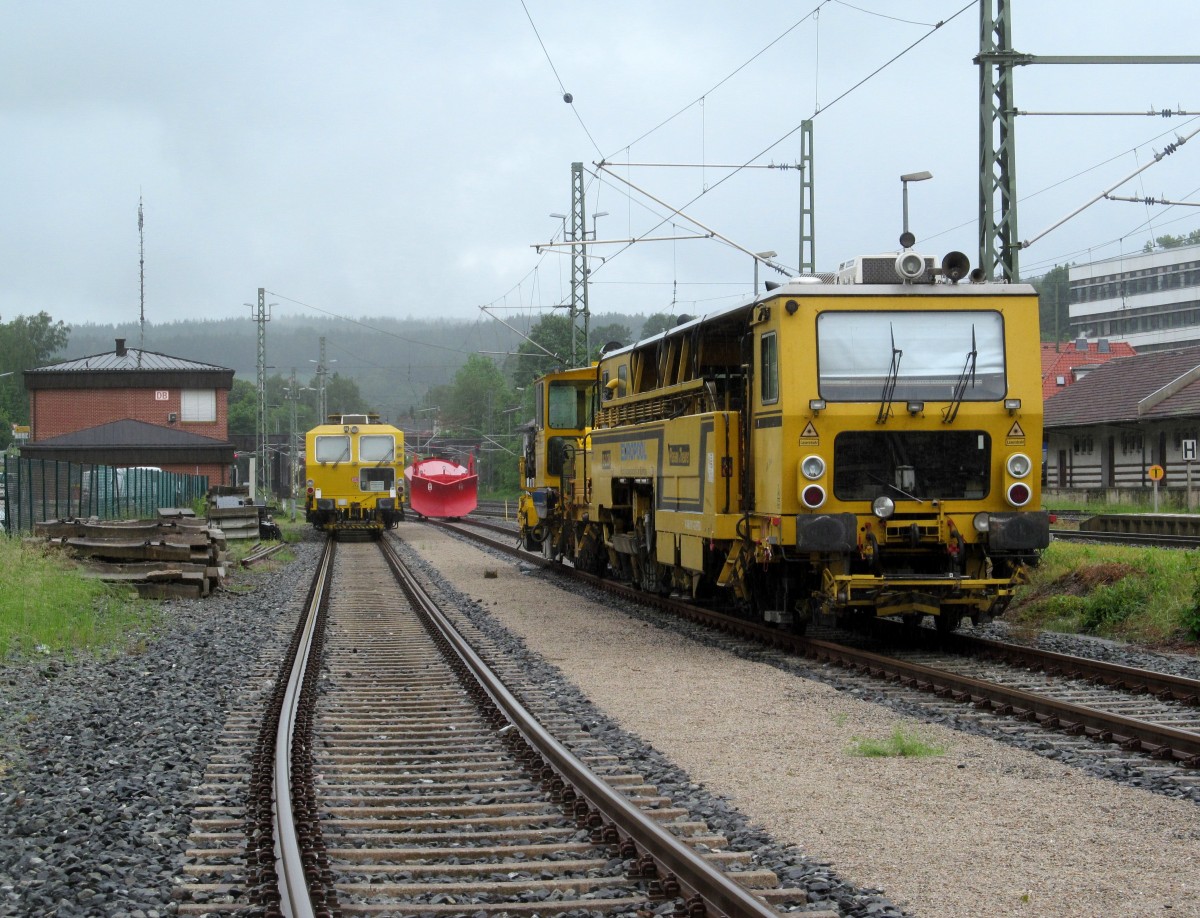 Zwei Stopfmaschinen stehen am 29. Mai 2014 im Bahnhof Kronach auf den Gleisen 5 und 6 abgestellt.