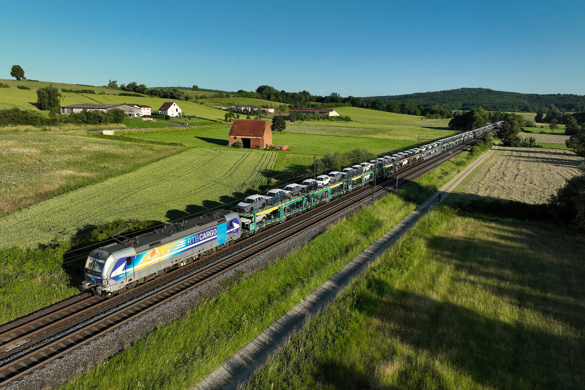 Nur im Hochsommer läßt sich diese Fotostelle bei Nüst im Haunetal umsetzen, denn nur dann dreht die Sonne weit genug, dass auch auch die nordwärts fahrenden Züge Frontlicht abbekommen. Am 19. Juni 2025 war es bereits kurz vor 20 Uhr, als ich dort die für die Rurtalbahn Cargo fahrende 193 824 vor dem DGS 47142 von Györ nach Bremen Rbf fotografieren konnte. Der mit fabrikneuen Audis und Cupras aus ungarischer Produktion beladenen Ganzzug zählt interessanterweise zu den Leistungen, die ich (nicht geplant) am häufigsten fotografiert habe. Diverse Bilder davon sind zwischen Bayern und Bremen entstanden, nun also auch eins aus der Mitte Deutschlands.