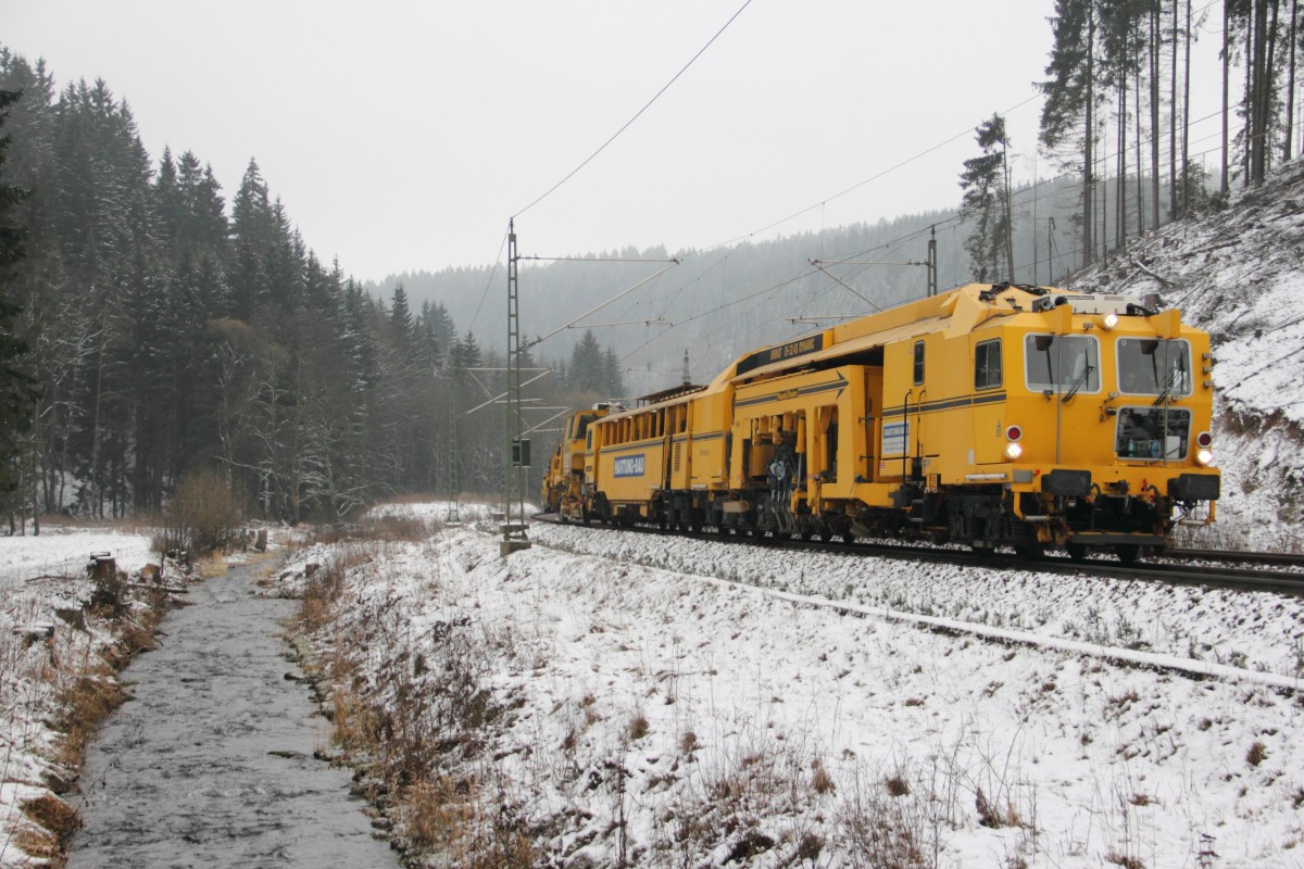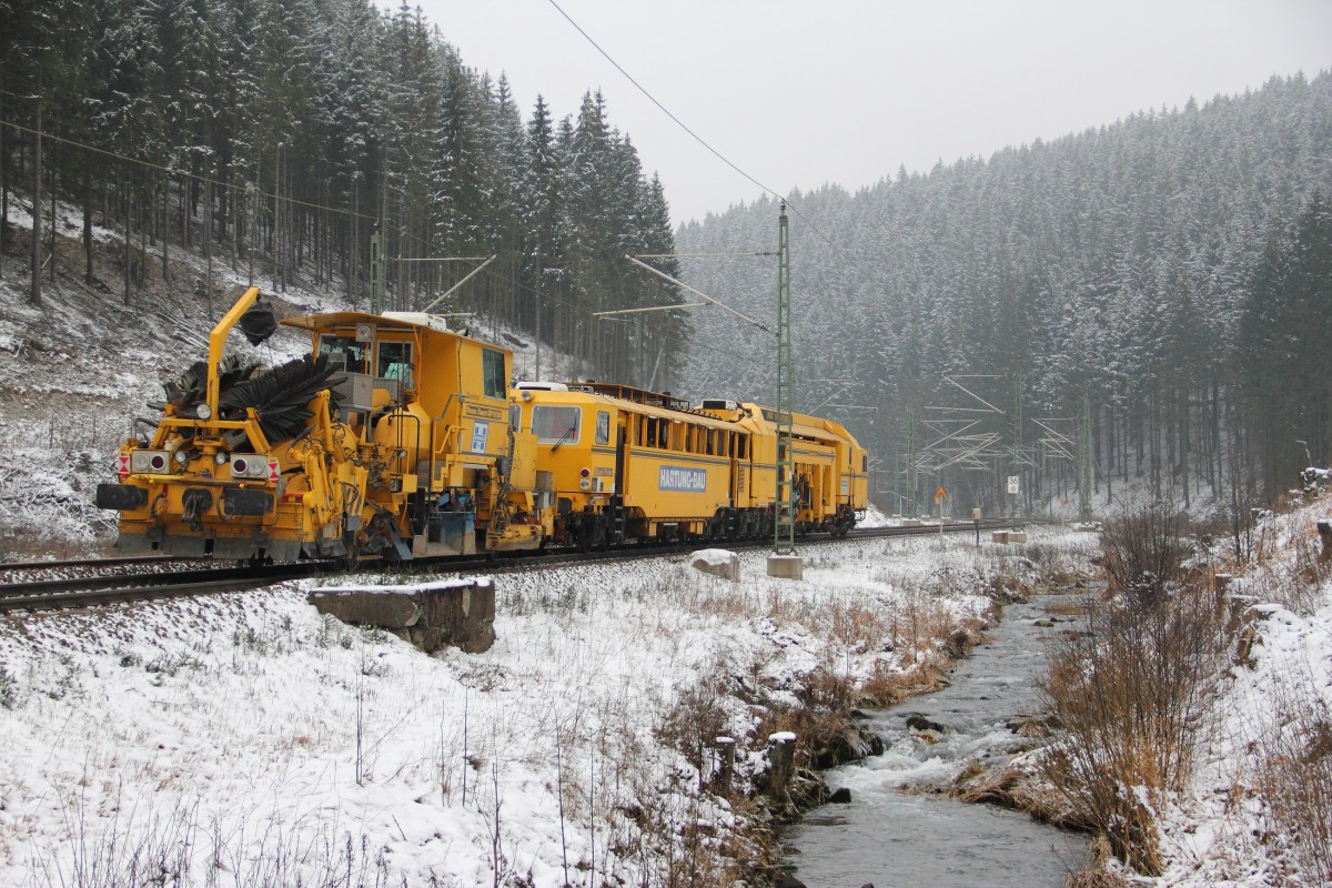 Bahnbau Hartung "Quasimodo" H-BAU 99 80 9421 019-7 (P&T Unimat 09-32/4S Dynamic) + "Esmeralda" H-BAU 99 80 9425 099-5 (SSP 110W) Richtung Naumburg (S), am 17.03.2024 in Großkorbetha.