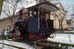 Links das kleine historische Stellwerk des Bahnhofes.