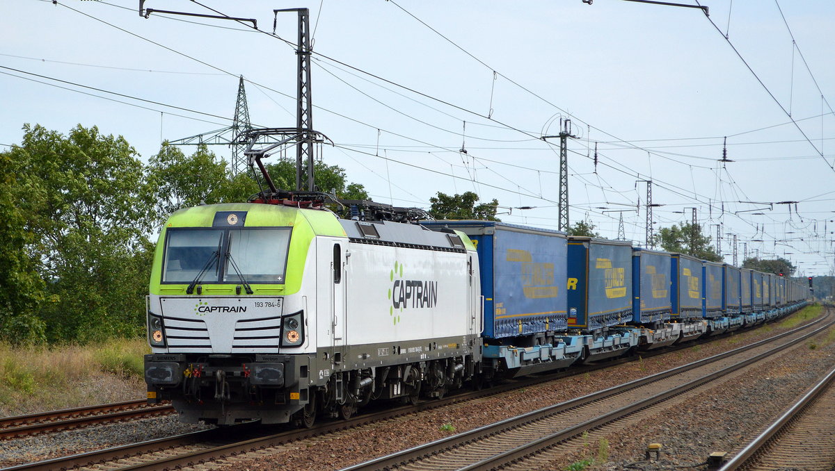 ITL - Eisenbahngesellschaft mbH, Dresden [D] mit "193 784-6" [NVR-Nummer: 91 80 6193 784-6 D-ITL] und Taschenwagenzug am 13.08.20 Bf. Saarmund.