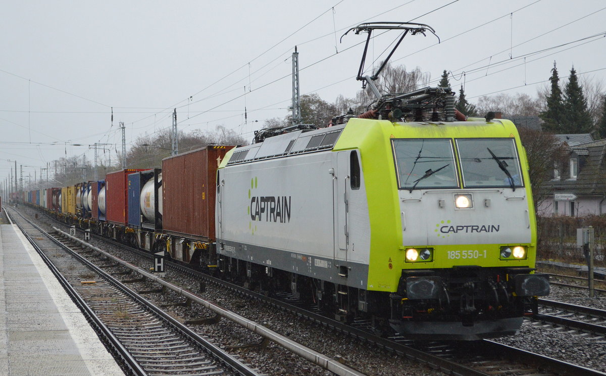ITL - Eisenbahngesellschaft mbH, Dresden [D] mit "185 550-1" [NVR-Nummr: 91 80 6185 550-1 D-ITL] und Containerzug am 19.01.21 Berlin Hirschgarten.