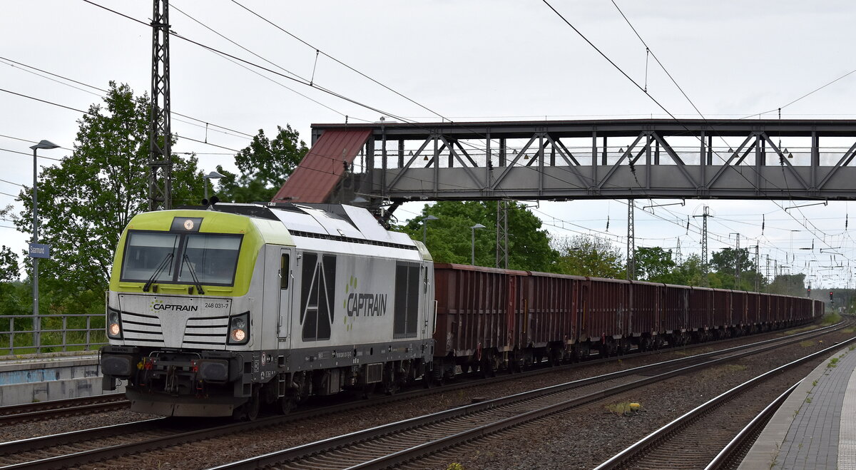 ITL - Eisenbahngesellschaft mbH, Dresden [D] mit ihrer Vectron Dual Lok "248 031-7" [NVR-Nummer: 90 80 2248 031-7 D-ITL] und einem Ganzzug Hochbordwagen mit staubiger Befüllung am 07.05.24 Höhe Bahnhof Saarmund.