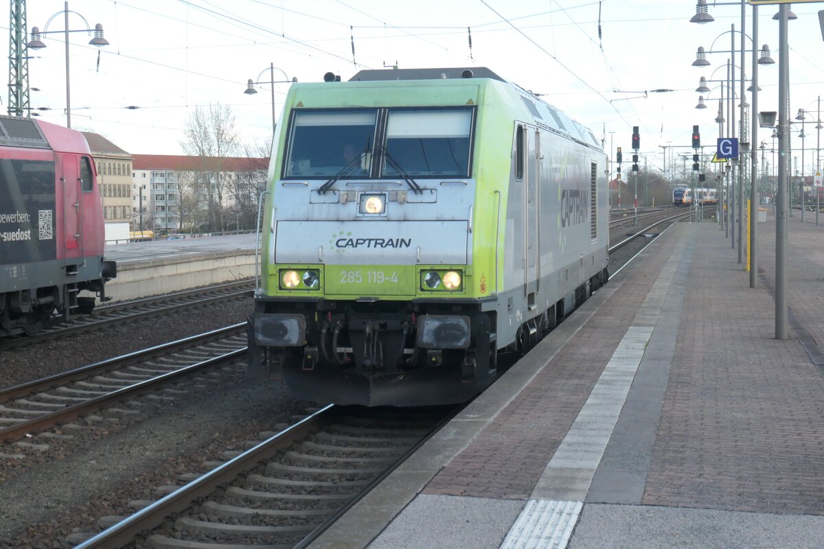 152 197 der Captrain schleppte am 01.03.26 einen Maersk-Containerzug durch Wittenberg-Labetz Richtung Falkenberg(E).