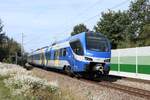 186 443-8 (Lokomotion - "Traumjob: Volle Kraft voraus") mit einem Containerzug in Ostermünchen, 12. Oktober 2023