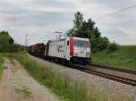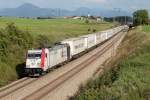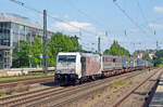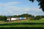 In einem Waldstück bei Reischenhart fotografierte ich am 15. Juni 2025 den KLV-Zug DGS 43129 auf der Fahrt nach Verona Q.E. mit 186 440 und einer weiteren 186 von Railpool als Zuglok. Christoph Schneider