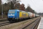 Und im allerletzten Licht kam dann noch als Abschlusshighlight vom 27.10.2012 die 185 664 mit leerem Containerzug in Richtung Süden durch Eschwege West.