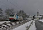 Weihnachtslok bringt Geschenke: Die Railpool/Lokomotion 193 146 "Frohe Weihnachten" beförderte am 4. Advent, 21.12.2025, den DHL-Paketzug von Hamm über Bebra nach München Riem. Mit rund 100 Minuten Verspätung kam die farbenfrohe Lokomotive fröhlich pfeifend scheinbar die Frankenwaldrampe herauf und könnte dabei mit ihrem Geschenke-Express quasi bei Steinbach am Wald aufgenommen worden sein. HINWEIS: KI-generiertes Bild (künstliche Winterlandschaft). Matthias Kümmel