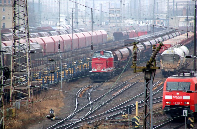 Diese DR-V 100 vom EVU Lotrac stand am 22.02.09 im Rbf von Halle(S) abgestellt. Sie sieht zwar aus wie eine von Uwe-Adam - ist aber eine von Lotrac. Martin Schneider