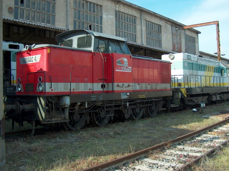 LOTRAC 7 bei der Ausfahrt in Bahnhof Laucha (Unstrut). Sie brachte eine Waggonramme zur Arco Transportation GmbH nach Karsdorf. Rechts erkennt man noch das Gleis der ehemaligen Finnebahn nach Lossa; 13.05.2008 Frank Thomas