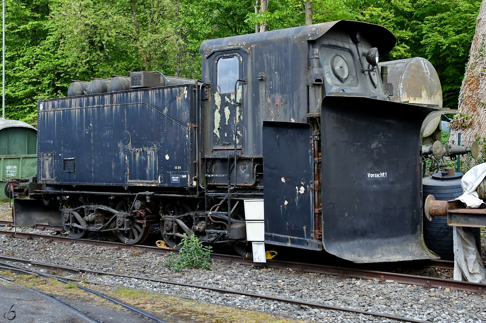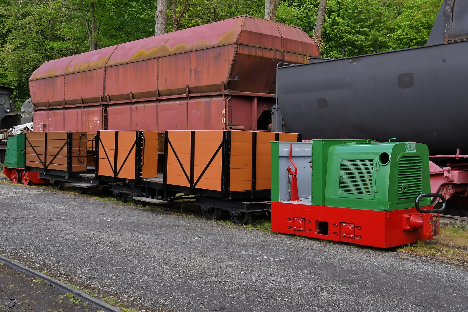 Die Diesellokomotive V 661 zieht einen gemischten Güterzug, könnte man zumindest meinen... (Eisenbahnmuseum Bochum, Juni 2019)