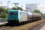 mkb - Mindener Kreisbahnen GmbH, Minden [D] mit "185 617-8" [Name: Zoe] [NVR-Nummer: 91 80 6185 617-8 D-ATLU] mit Containerzug (Kühlthermo-Container) verlässt am Abend den Hamburger Hafen, 02.06.20 Bf. Hamburg-Harburg.