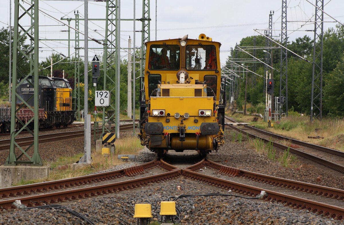 Monti Gleisbau Gleisbaumaschine im Bermuda-Dreieck | Züssow | Juli 2020 | vom Reisenden-Bü aus aufgenommen