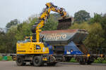 Am 16.10.2024 konnte ich in Eppelborn das Beladen eines Zuges mit Schotter beobachten. Im Moment sind zwischen Eppelborn und Lebach Bauarbeiten.