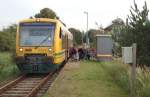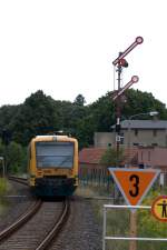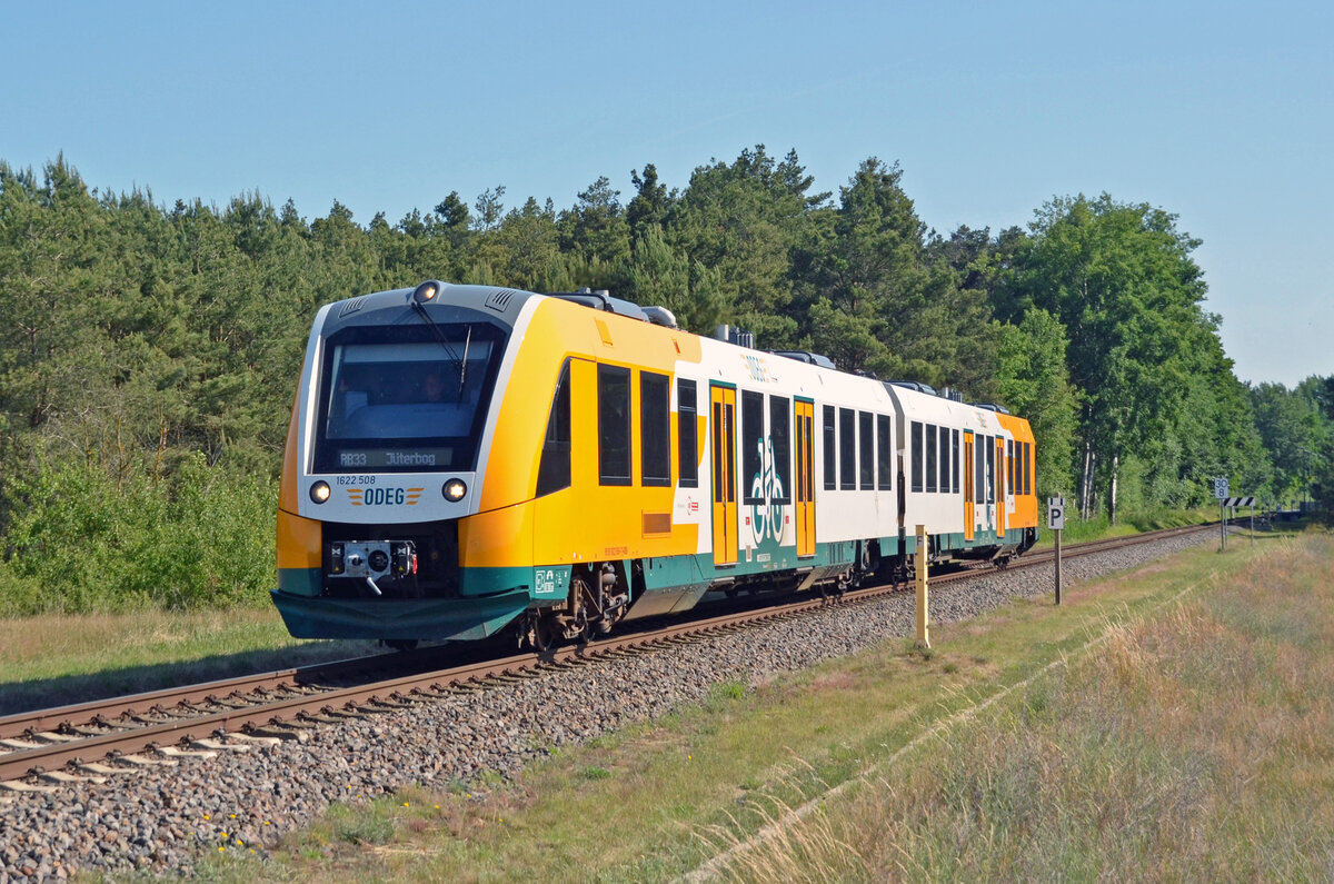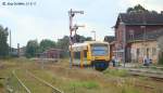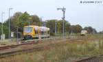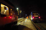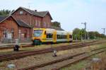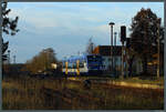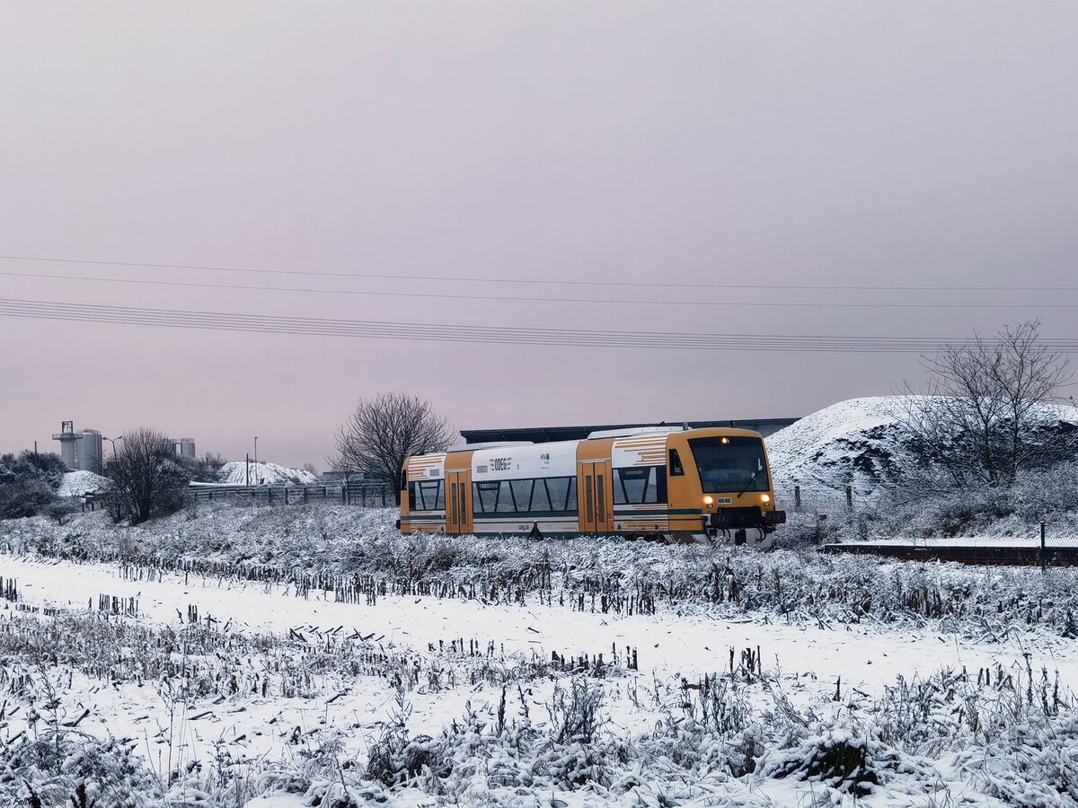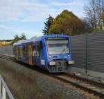 Ein Dieseltriebwagen der BR 650 (RegioShuttle) der ODEG in Warenshof am 11.12.2022