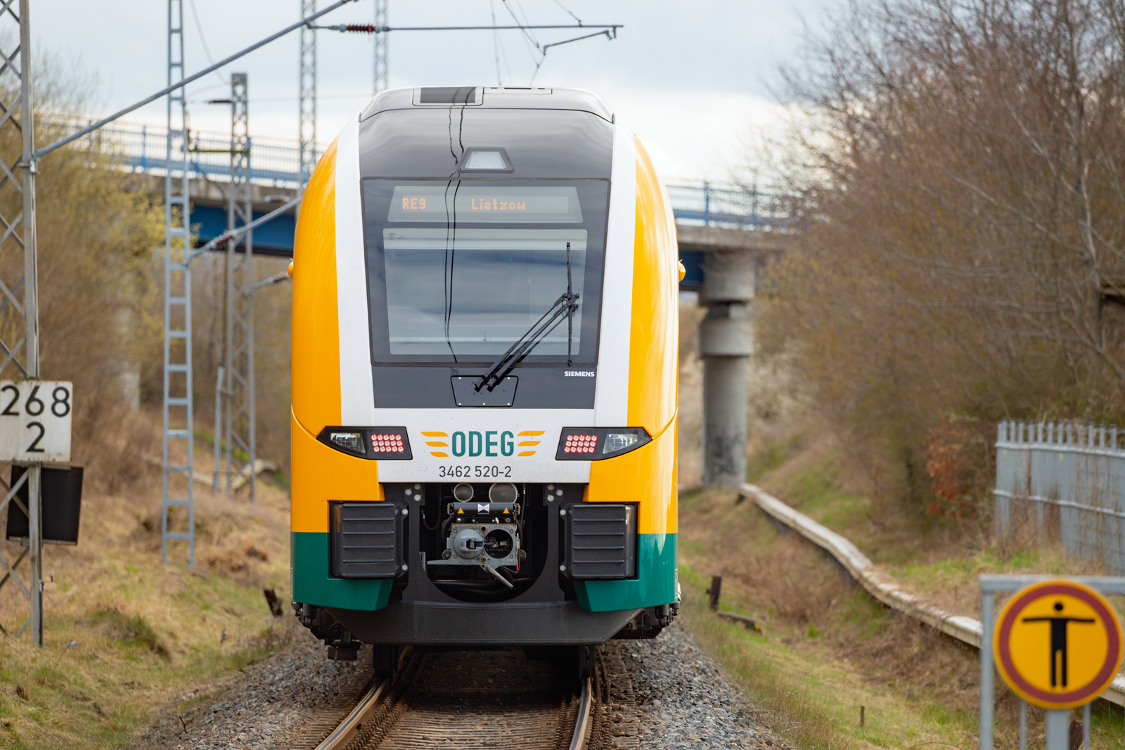 Die ODEG mit Triebwagen 462 520 ausfahrend in Sagard durch die Unterführung der B 96.