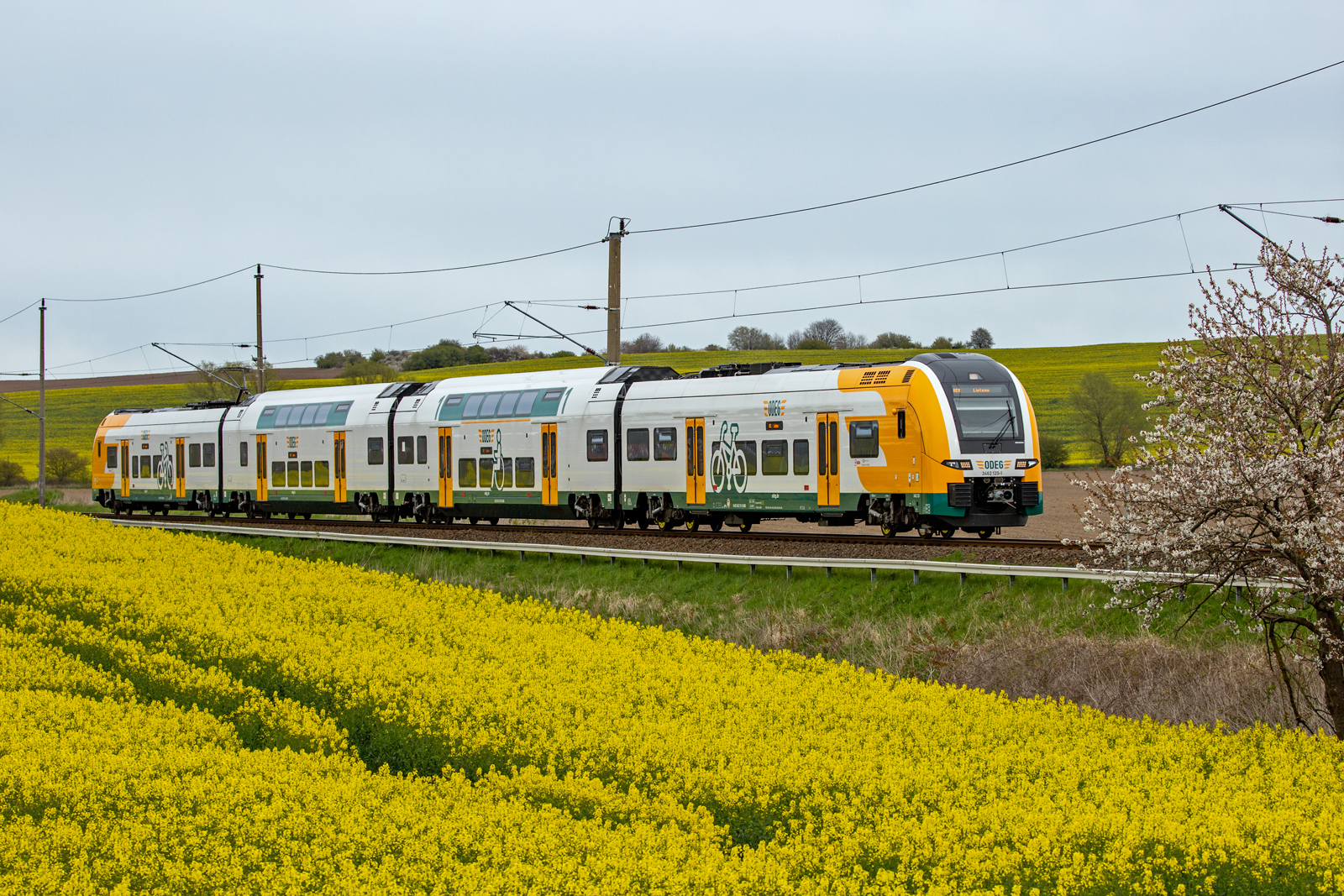 ODEG Triebwagen 462 120 zwischen Sassnitz und Lietzow, hierbei scheint es, dass sich Triebwagen und Landschaft farblich angepasst haben. - 04.05.2023