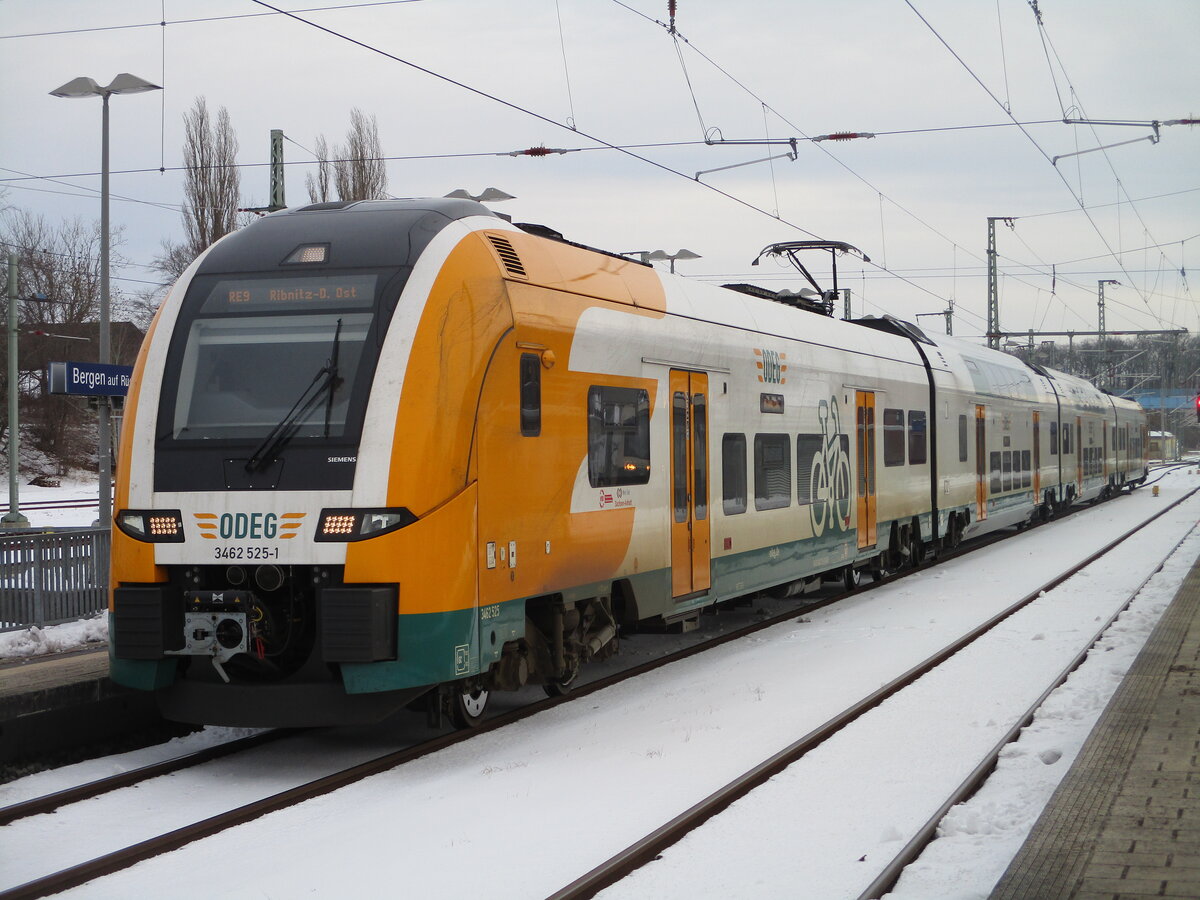 Schon drei Tage lang stand der ODEG 462 120 in der eisigen Kälte.Am 15.Februar 2026 konnte ich ihn in Bergen/Rügen sogar bei Sonnenschein fotografieren.