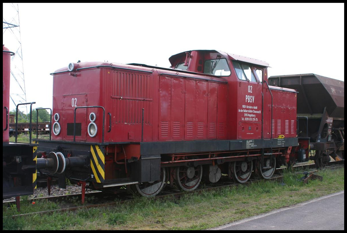 17. März 2010, Im Bahnhof Hochstadt-Marktzeuln steht Lok PBSV 19. Lokgeschichte: 1971 Auslieferung an DR als 110 324. 30.07.1980 Einbau 1200 PS Motor. 01.01.1981 Umzeichnung in 112 324. 01.01.1992 Umzeichnung in 202 324. 15.08.1998 Ausmusterung in Görlitz, an SFZ - Schienenfahrzeugzentrum Stendal. 01.11.2002 an ALS - ALSTOM Lokomotiven Service GmbH, Stendal. Umbau gemäß Umbaukonzept BR 203.1. 09.02.2007 an PBSV-Verkehrs-GmbH, Magdeburg "19". (Quelle: v100-online.de)