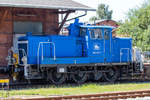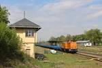 Die ehem.VEB Maxhütte Unterwellenborn, Unterwellenborn  V 100.4-23  293 023-8 (Press) zusehen am 15.05.20 in Oppurg.