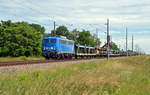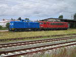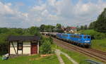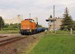 Die ehem.VEB Maxhütte Unterwellenborn, Unterwellenborn "V 100.4-23" 293 023-8 (Press) zusehen am 15.05.20 in Oppurg.