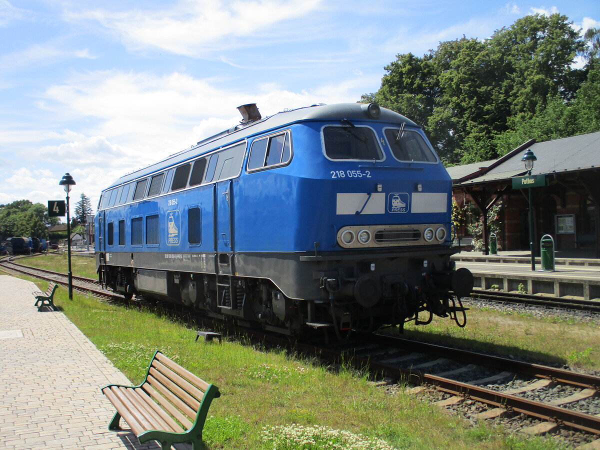 Vom 14.-16.Juni 2024 stand die PRESS 218 055 in Putbus.Kurz vor der Abfahrt Richtung Bergen/Rügen konnte ich die Lok,am 16.Juni 2024,noch in Putbus fotografieren.
