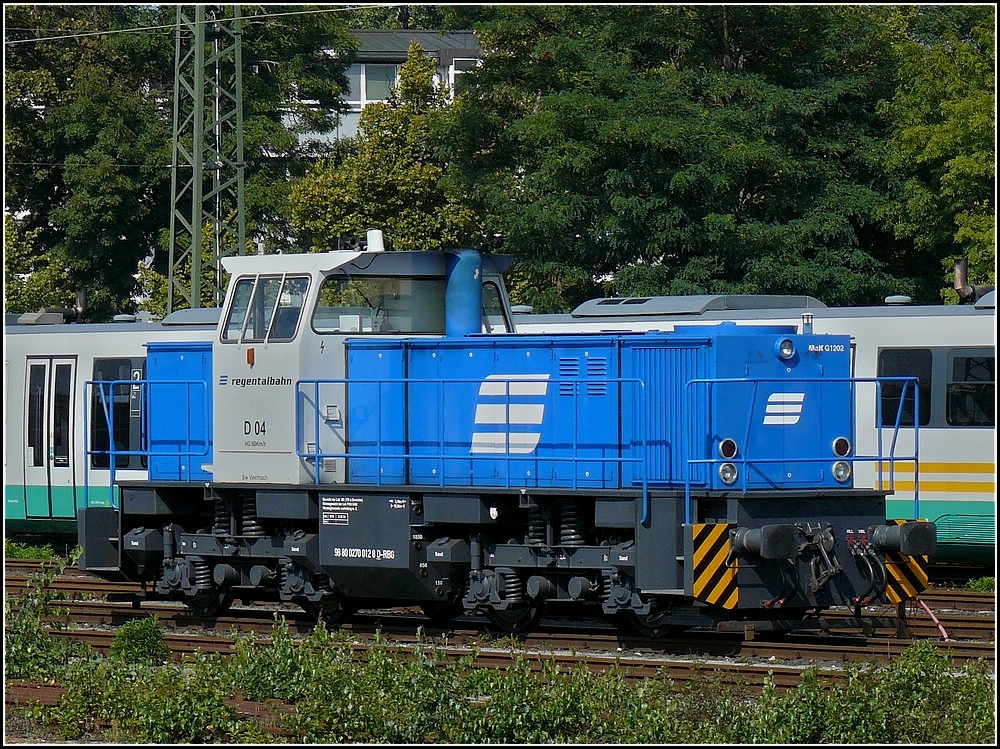 Diese MaK G 1202 der Regentalbahn (D 04) habe ich am 11.09.2010 in Regensburg fotografiert. (Hans)