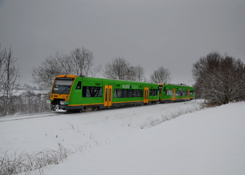 650 655 (VT 20) + 650 662 (VT 27) als RB nach Bayerisch Eisenstein am 17.01.2013 bei Triefenried.