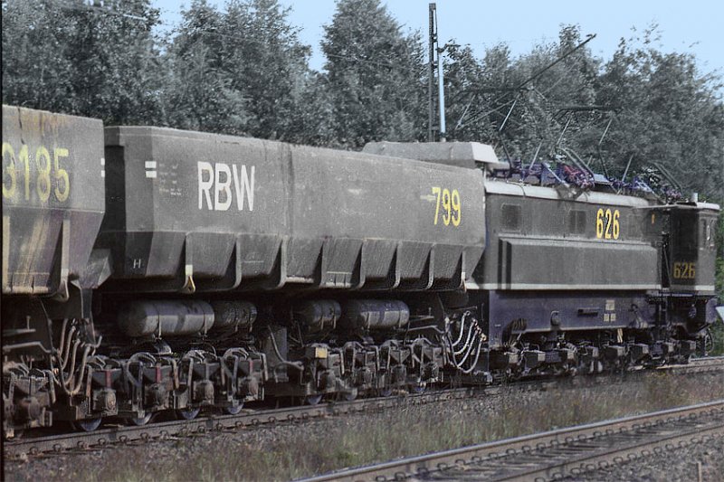 Ebenfalls ein Zug der RheinBraun-Werkbahn (neuerdings RWEPower)auf dem Wege, um Ladung aufzunehmen.