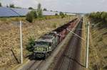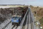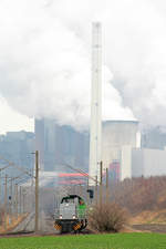 Auf der Nord-Südbahn bei Sinsteden schiebt die noch grün lackierte RWE Power 551 am 12.02.2021 einen Leerzug in Richtung Frimmersdorf. Ganz so gemütlich wie es auf dem Bild aussieht, war es nicht: Die Fotostelle ist nur mit einem längeren Fußmarsch über Feldwege erreichbar und wenn Wolken vor die Sonne zogen, wurde es bei Minustemperaturen verbunden mit dem eisigen Ostwind richtig unangenehm. Horst Lüdicke