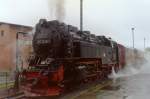 mit einem geschobenen Zug Richtung Süden auf der über 31 km langen Nord-Südbahn der Rheinbraun in Frimmersdorf am kalten 06.02.2003.