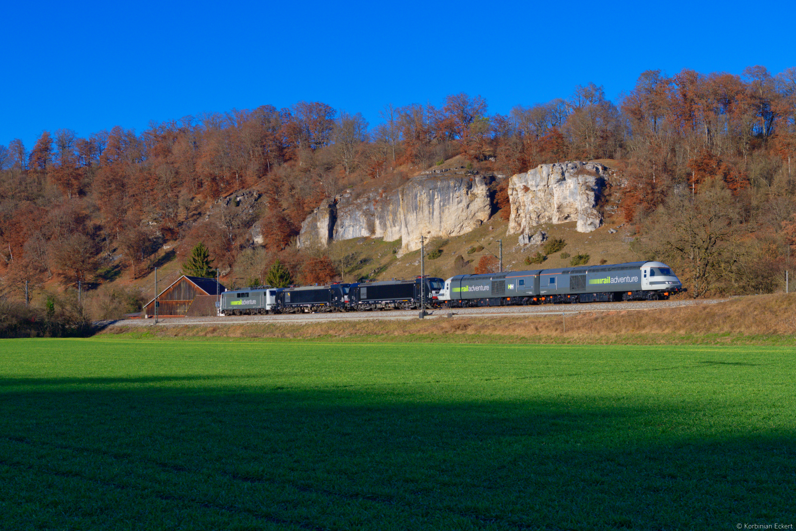 Häufig auf der Nord-Süd-Strecke zu beobachten sind Loküberführungen von RailAdventure. So auch am 21. Juni 2025, als ein DGV 92915 von Braunschweig nach München Allach verkehrte. Hierbei überstellten 111 210 und 215 folgende Loks zurück ins Herstellerwerk: Die 193 777 von InRail, die 1293.207 für GMP sowie drei ÖBB Vectrons. Diese waren wie folgt im Zugverband gereiht: 1293.140, 129 sowie 134. Nachdem in Braunschweig die finale Inbetriebnahme erfolgte, konnten die Maschinen im Anschluss an ihre neuen Eigner übergeben werden. Bei Hermannspiegel in Osthessen, gelang es mir leider nicht ganz, die komplette Überführung auf's Bild zu bekommen. Christoph Schneider